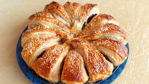Попробовала этот способ оформления пирога из слоеного теста, и теперь не расстаюсь с ним никогда: пирог-ЦВЕТОК радует взор!