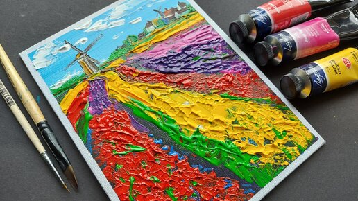 Рисуем просто / Поля тюльпанов / Пошаговая картина акрилом