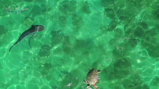 Тигровая акула нападает на морскую черепаху