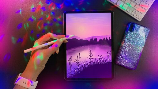 Рисую рассвет на планшете iPad