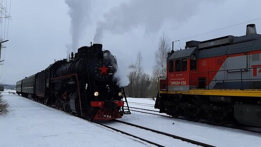 Весёлые гудки паровоза. Встреча локомотивов и сброс пара.