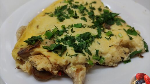 Показываю какой омлет муж приготовил мне на завтрак.