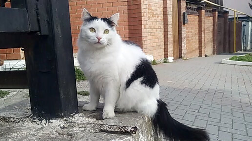 По дороге к морю, встретила очень красивую чёрно-белую кошечку. Видимо, домашняя