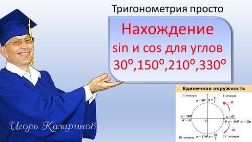 Тригонометрия: определение синусов и косинусов углов 30, 150, 210, 330 на единичной окружности.