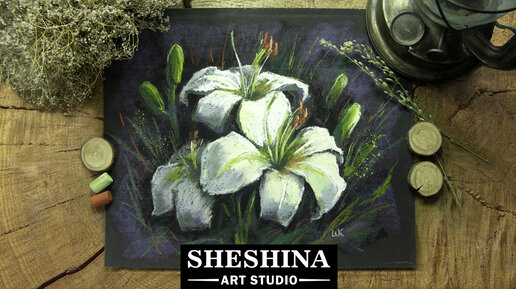 Как нарисовать цветы белой лилии сухой пастелью 🎨 Шешина Екатерина