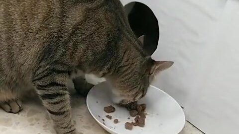 Кот кушает, а воробей мешает