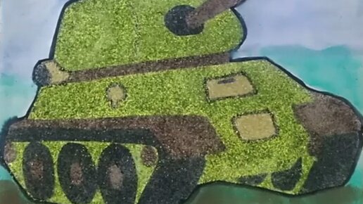 Аппликация танк из блесток на самоклеящейся бумаге .