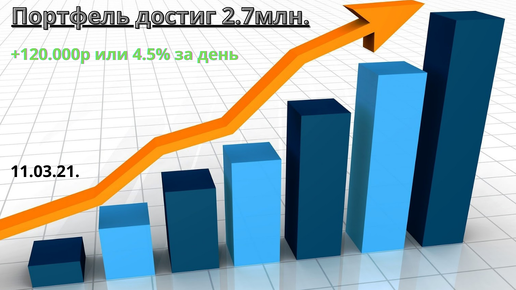 +4.5% за день. Портфель достиг 2.7млн. 11.03.21. Продолжится ли рост ?!? Инвестиции тинькофф.