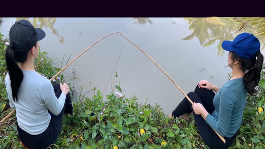Две сестрички ловят рыбу на сколопендру - пол часа и полный тазик больших сомов
