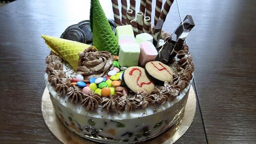 Нереально вкусный торт " ЦВЕТА РАДУГИ" с молочным желе,фруктами и мармеладом.