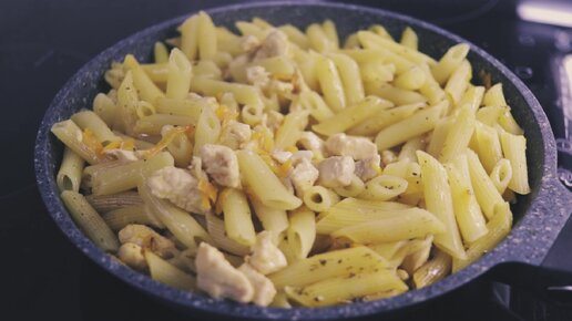 Макароны с куриным филе на сковороде и вкусный ужин готов.# 37