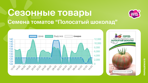 Продажи семян томатов "Полосатый шоколад" на Wildberries. Аналитика маркетплейса