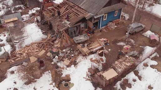 Деревенские мужики ломают наш деревенский двор