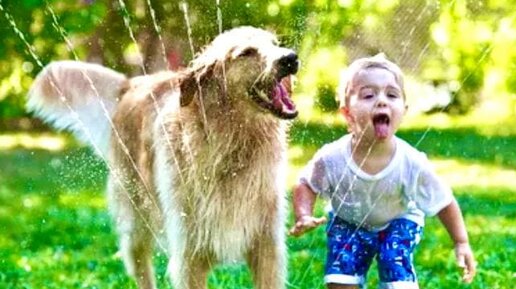 Детки веселятся с животными)
