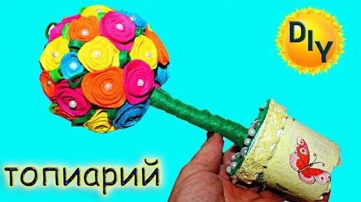 Как сделать яркий топиарий. Отличный подарок на праздник. Делать очень быстро.