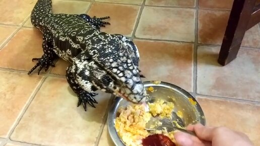 Кормлю Tegu с ложки