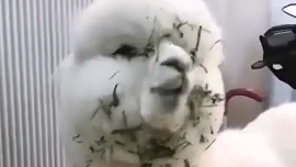 Альпака смешно кушает