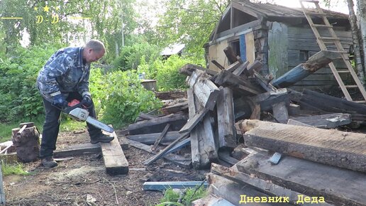 Разбираю старую БАНЮ,ДЕНЬ ТРЕТИЙ, Воспоминания. Пилю доски. Часть 4