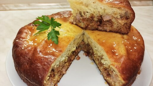 Быстрый и вкусный пирог на кефире с мясом