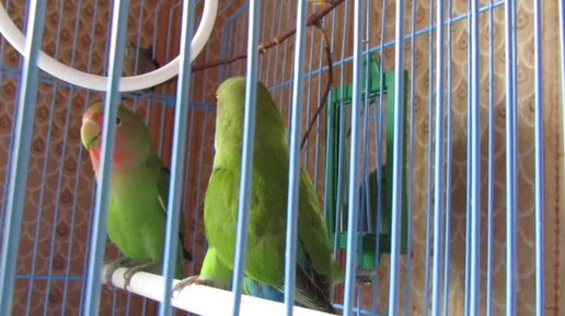 Реакция неразлучников на зеркало в клетке