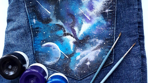 Даем джинсам второй шанс. Рисую космос на кармане.
