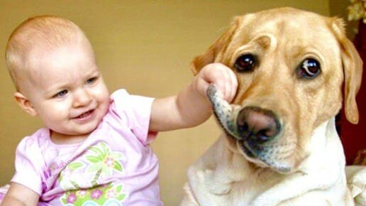 Животные присматривают за детьми)))