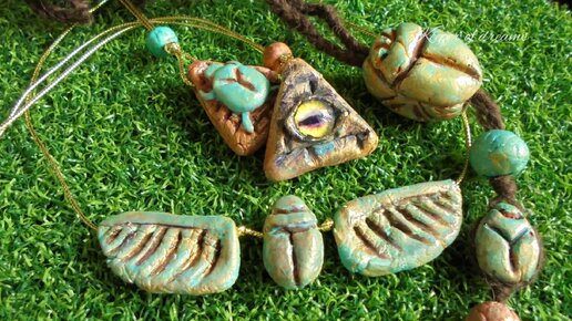 Завершение создания египетских кулонов своими руками. Окрашивание и сборка