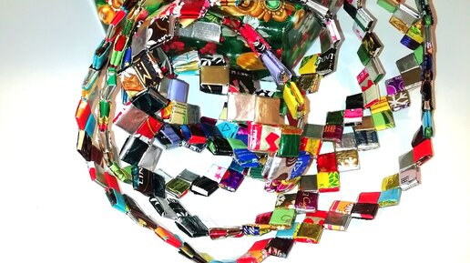 Гирлянда из фантиков от конфет - очень красивое украшение для новогодней ёлки или детской комнаты.
