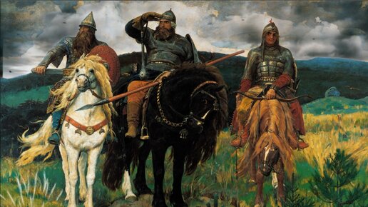 Ожившая картина. Три Богатыря: Добрыня Никитич, Илья Муромец и Алеша Попович в дозоре