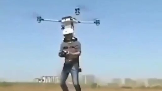 Мощный дрон поднял мужика над землей