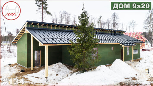 Одноэтажный каркасный дом 9*20 с тремя спальнями и автонавесом — стены и крыша, II этап стройки