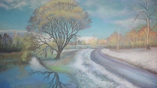 Нарисовала весенний пейзаж пастелью