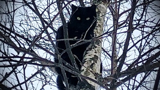 Из серии "Коты прилетели". Посмотрите как кошечка-подросток спускается с высокой берёзы.