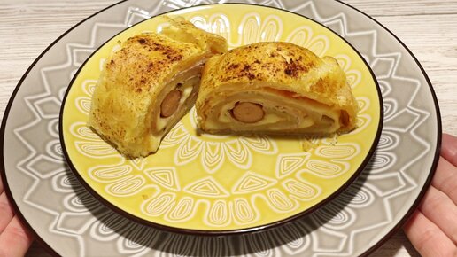 Быстрый рецепт со слоёным тестом и колбасой, всегда выручит когда надо быстро приготовить вкусное блюдо!