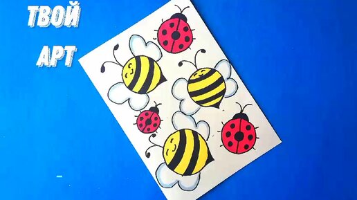 Простые рисунки из круга. 🐝🐞🐝Рисуем пчёлку🐝 и божью коровку.🐞 Делаем открытку просто своими руками. 👍👍👍