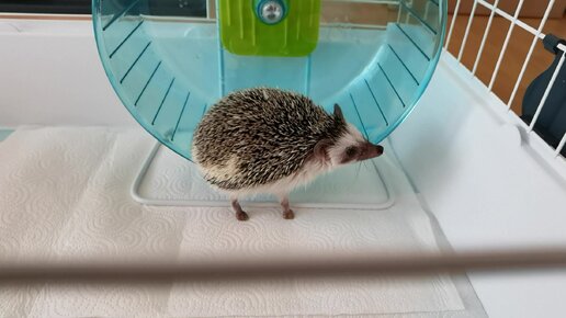 Ёжка Хлоя крутит колесо и хрустит червячками