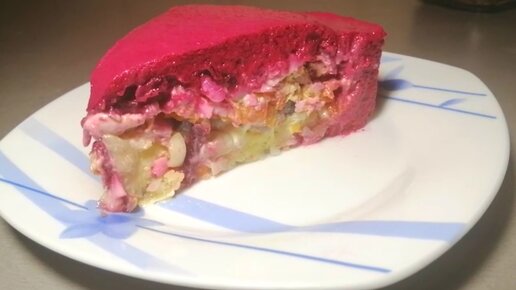 Салат "Сельдь под шубой" со свекольным муссом в виде торта