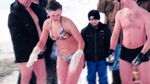 Люди веселятся после купания в ледяной воде