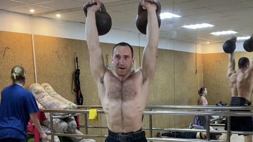 Тренировка с гирями 💪🔥. Толчок гирь 42 кг. Подтягивания в жилете. Отжимания на кольцах. Гиря 72 кг. Турецкий подъем с гирей.