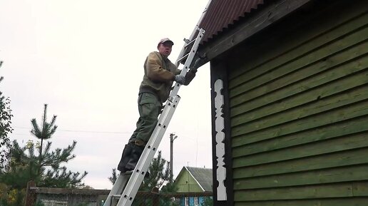 Монтирую водостоки на кривой крыше под дождём и градом!