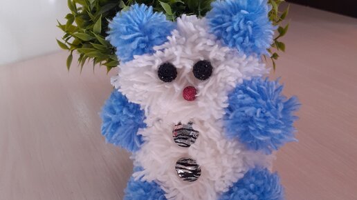 Из остатков пряжи сделала пушистого медвежонка. Получилось не хуже магазинной игрушки. Показываю
