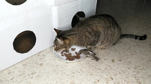 Кот отказался съесть воробья
