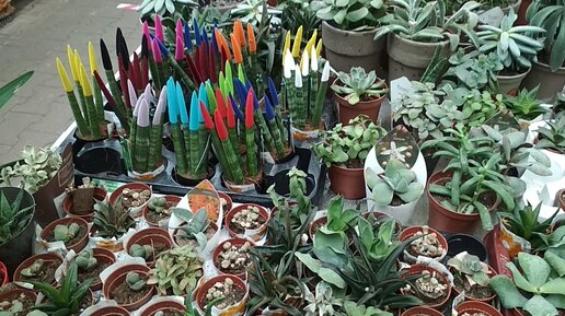 Суккуленты. Витрина магазина Оби.