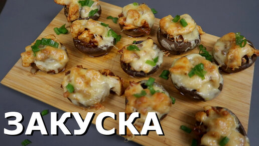 Закуска из грибов, сыра и курицы. Теплые тарталетки из шампиньонов.