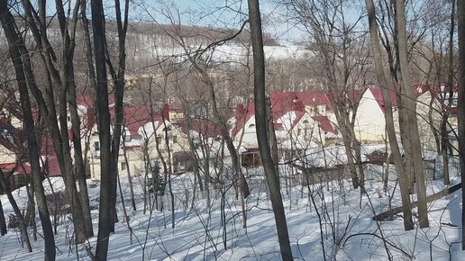 Цветные крыши у кромки русского леса. Коттеджный поселок в европейском стиле