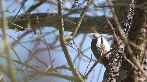 Дятел ищет себе еду