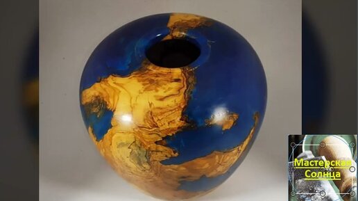 Залил деревяшку синей эпоксидной смолой и выточил из этого красивую вазочку для украшения интерьера.
