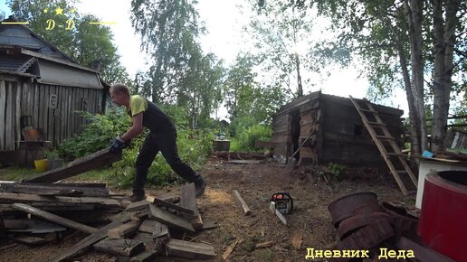 Пилю и колю то что разобрал. Разбираю старую БАНЮ. ДЕНЬ 5 Часть 5
