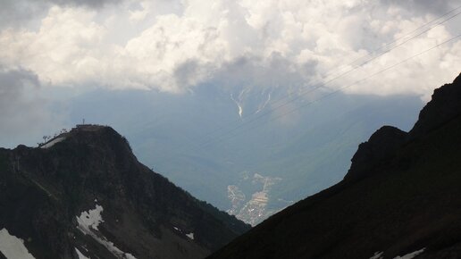 Горные вершины в снегу и облаках. Красная поляна