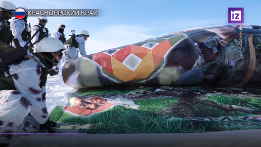 Бойцы ЦВО установили баннер в поддержку врачей на вершине горы